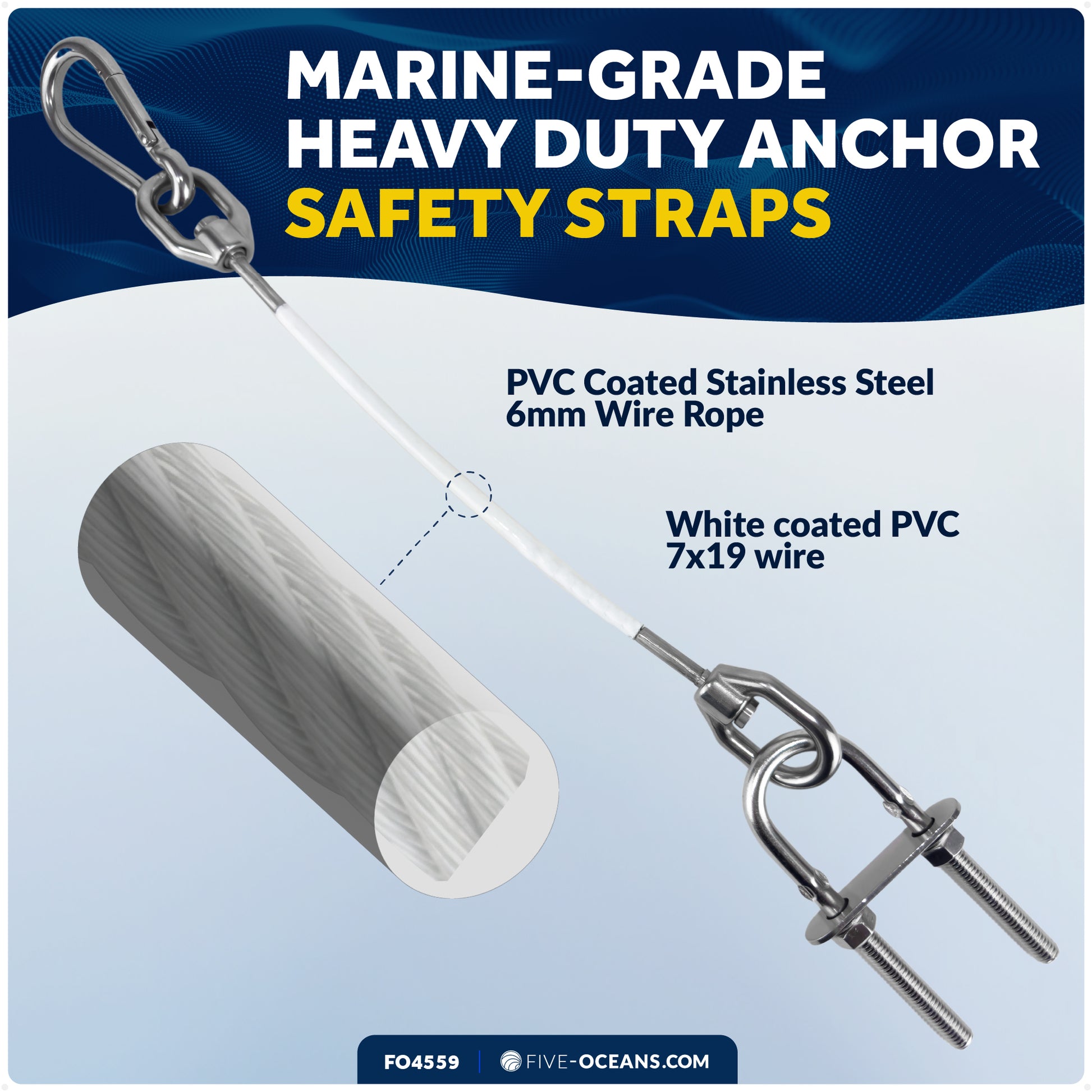 MARINE-GRADE - Made of Heavy Duty PVC Coated Stainless Steel 6mm Wire Rope. The PVC coating provides excellent protection against corrosion, moisture, and abrasion. This product is perfect for the marine environment.