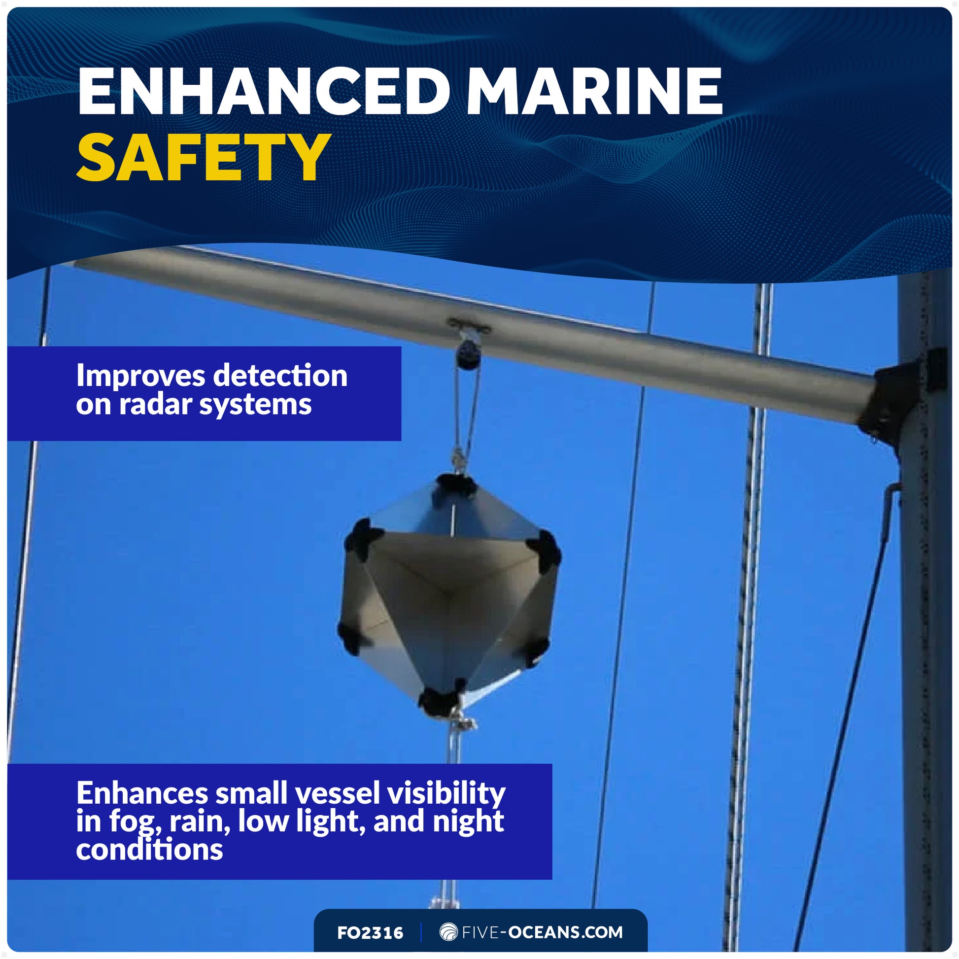 EFFECTIVE RADAR REFLECTION: Octahedral shape reflects radar signals from multiple angles, increasing your boat's visibility to other vessels in all directions.