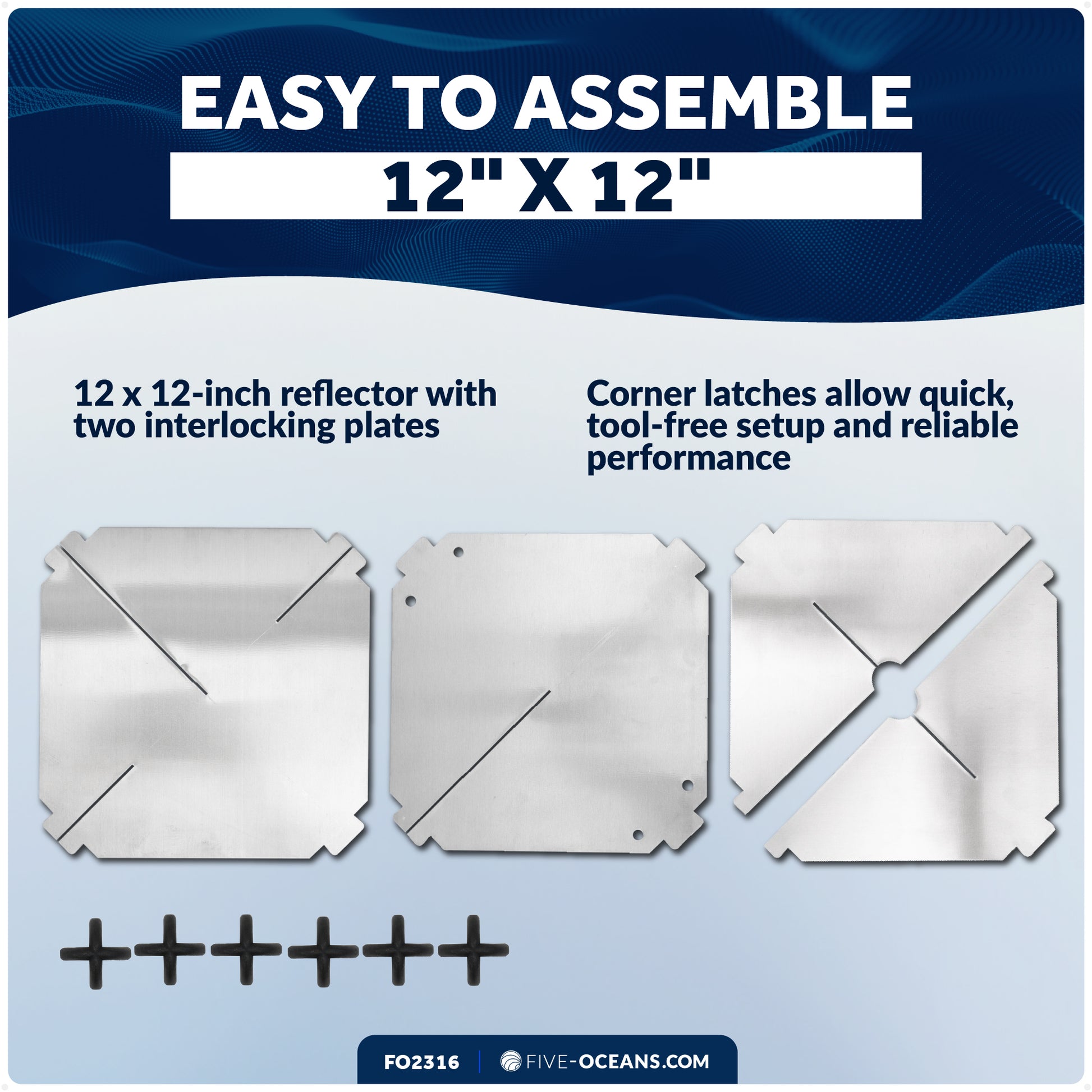 EASY TO ASSEMBLE: The 12 x 12-inch radar reflector features two interlocking plates secured by corner latches for quick, tool-free setup and reliable performance.