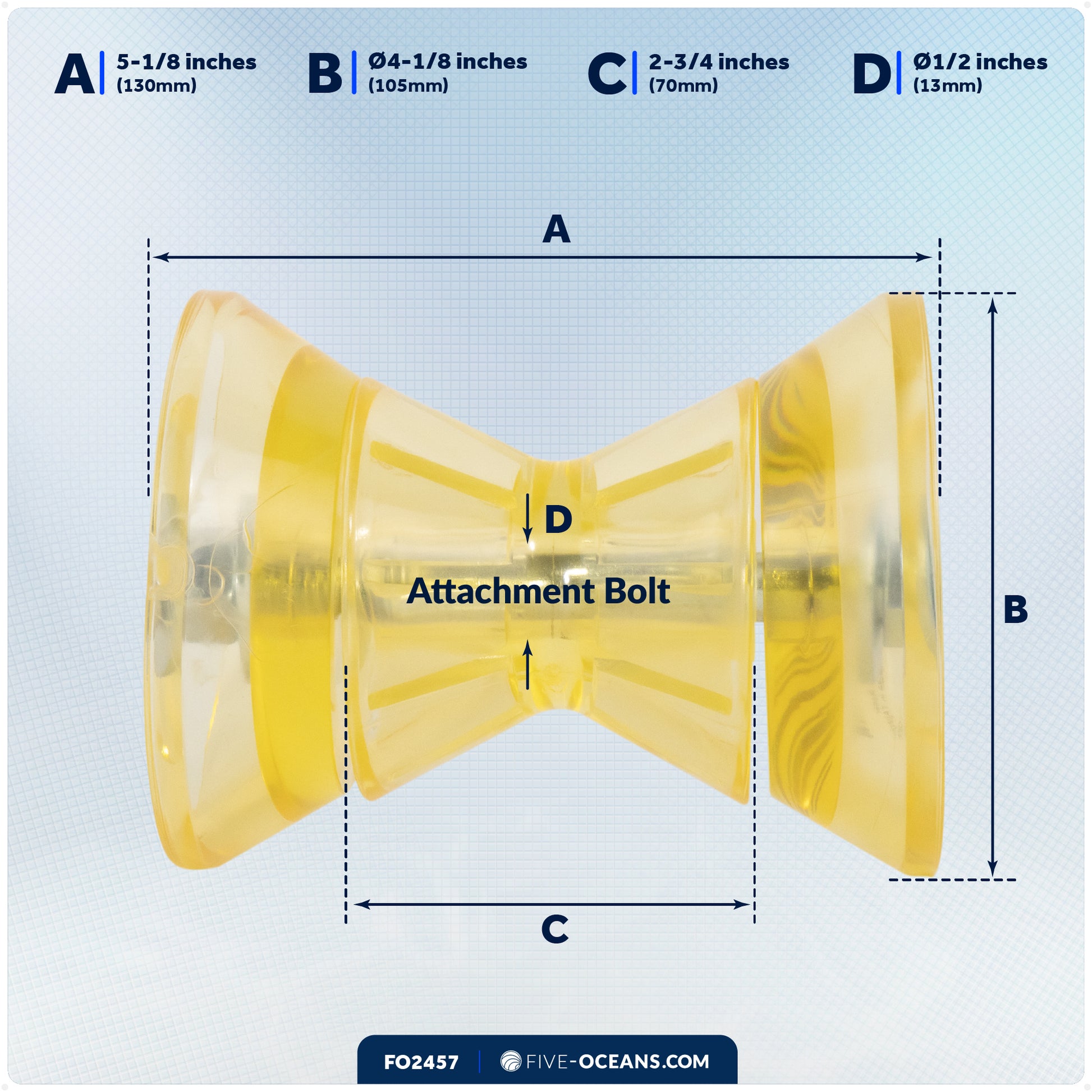 FITS 3-INCH WIDE BRACKETS - This boat trailer roller was designed for trailers with a 3-inch wide center roller bracket. Overall width: 5 1/8 inches (130mm), with a 1/2-inch attachment bolt for secure installation. Features a 3-piece bow roller style.