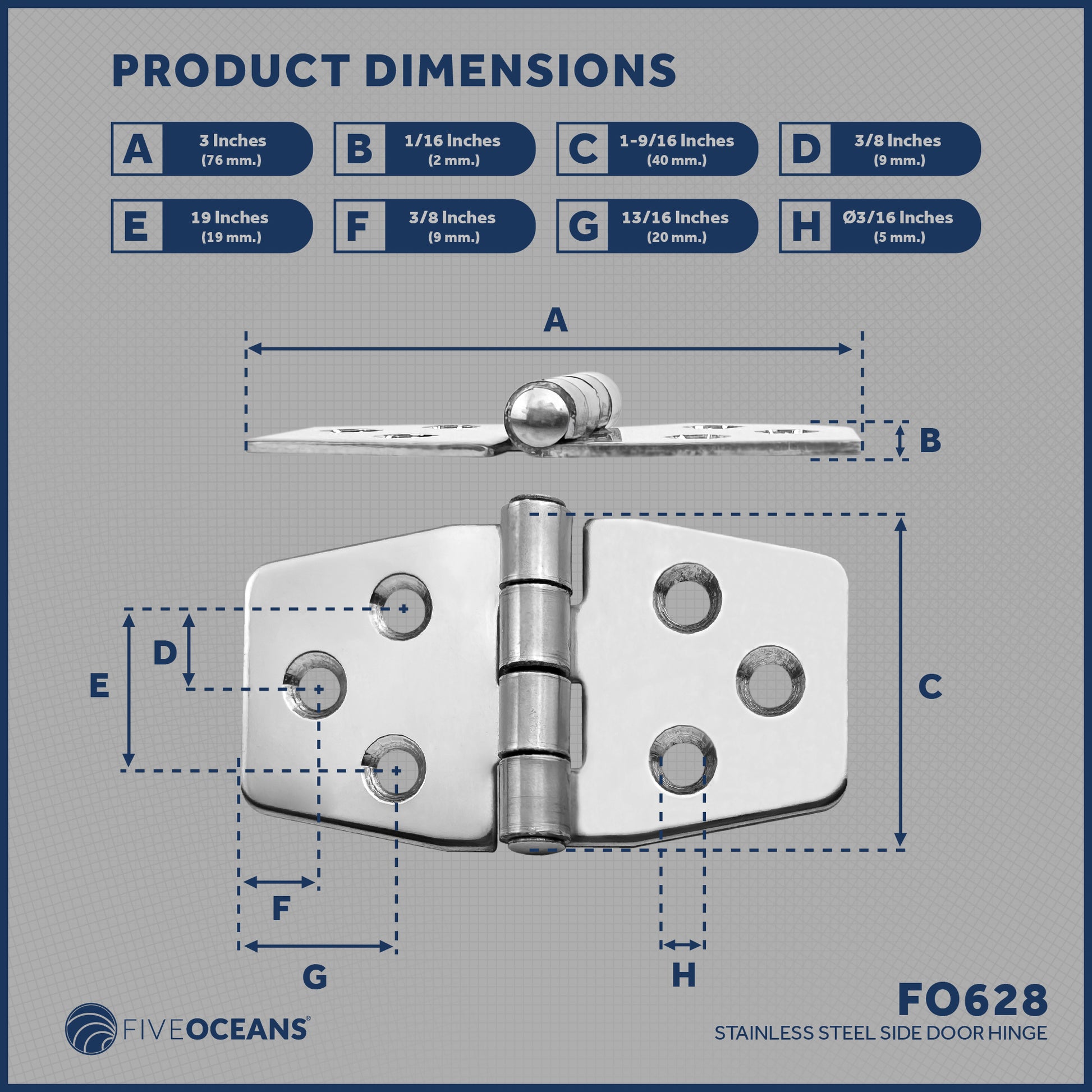 3" x 1-9/16" Door Hinge, 316 Stainless Steel - FO628