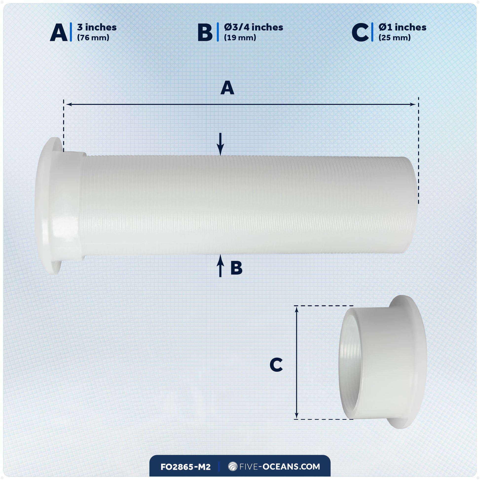 3/4" Boat Motorwell Thru Hull Drain Tube, White Nylon, 2-Pack - FO2865-M2