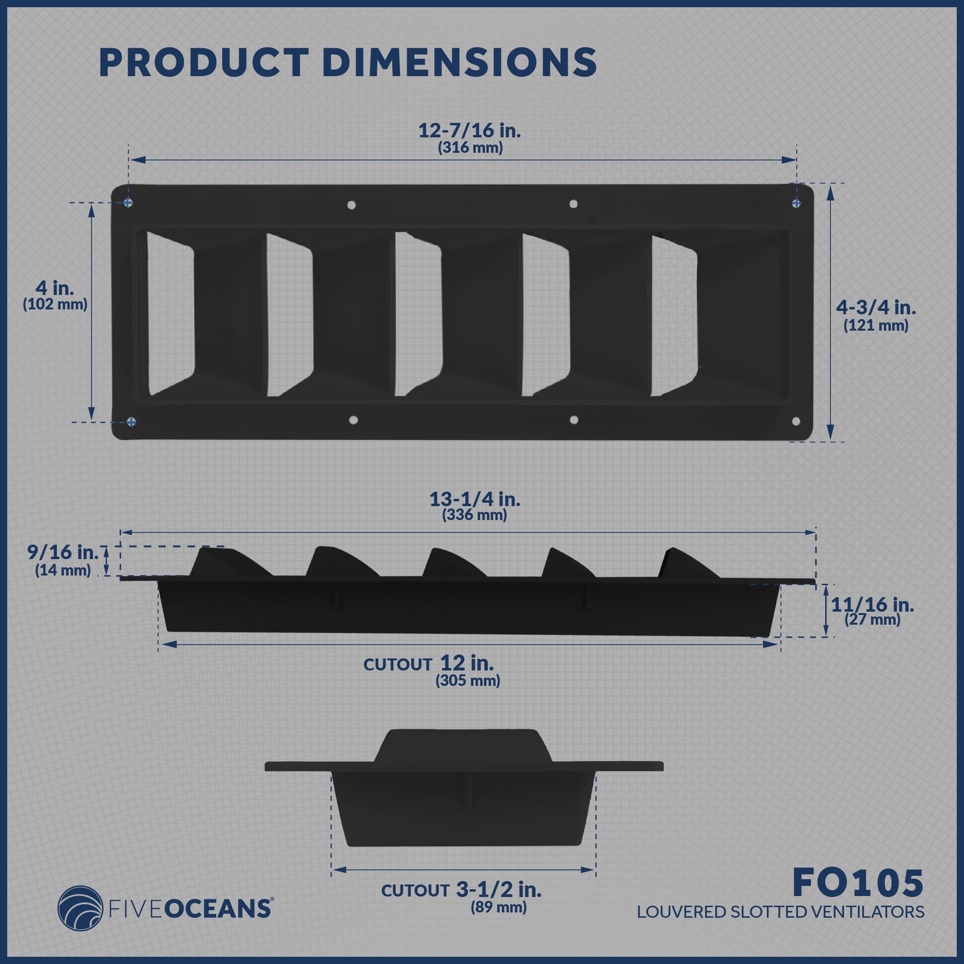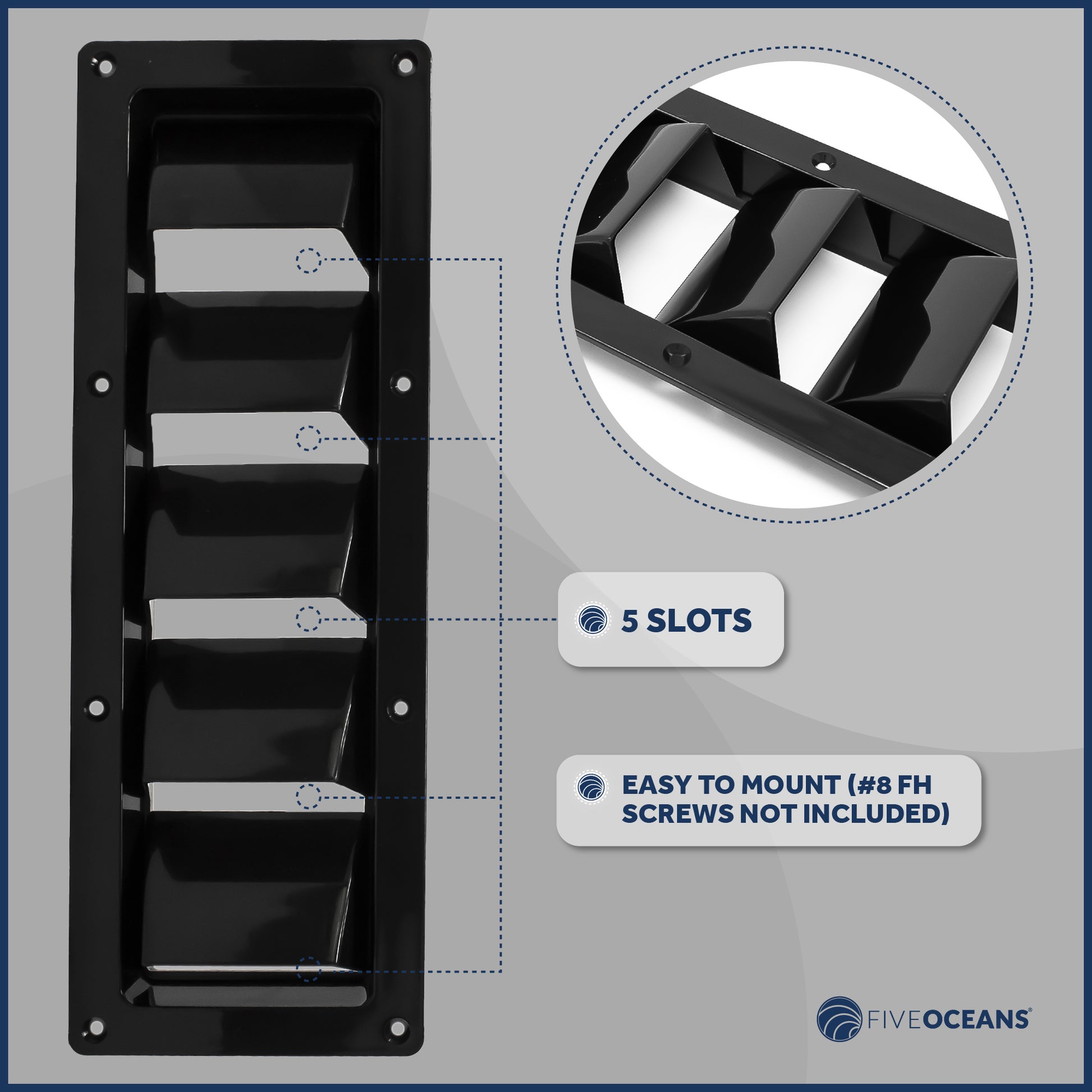 5-Slotted Louvered Ventilators, 13-1/4-Inch x 4-3/4-Inch, Black - FO105