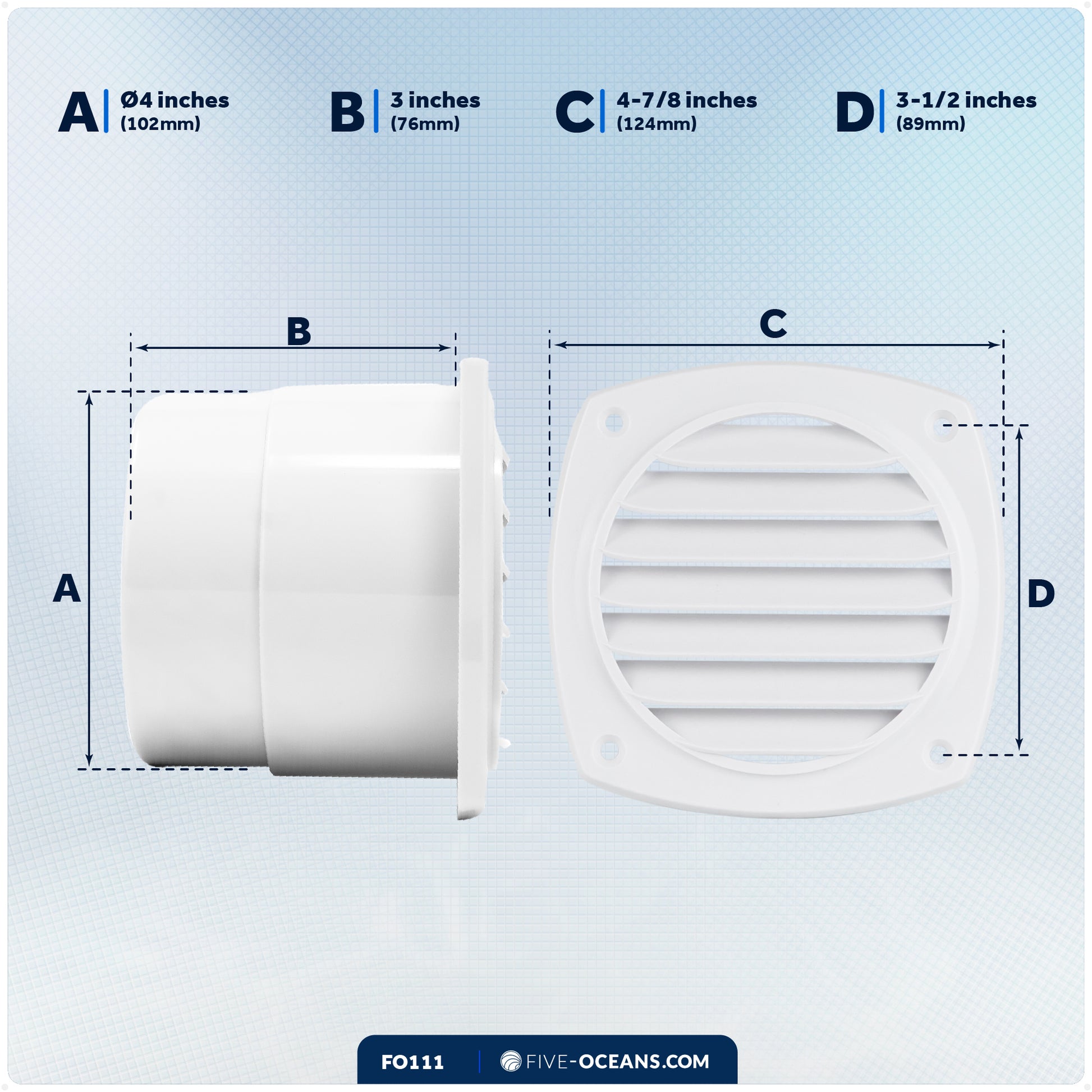7-Slotted Louvered Hose Vent, 4-inch Hose Diameter, White - FO111