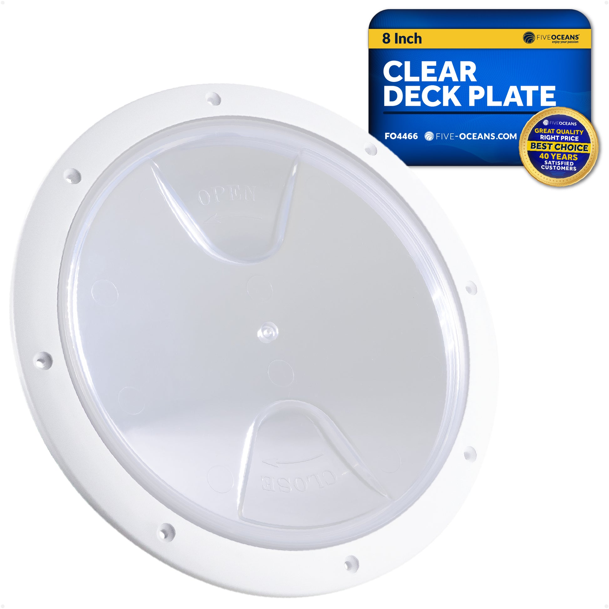 8" Deck Plate, Round White with Clear Lid - FO4466