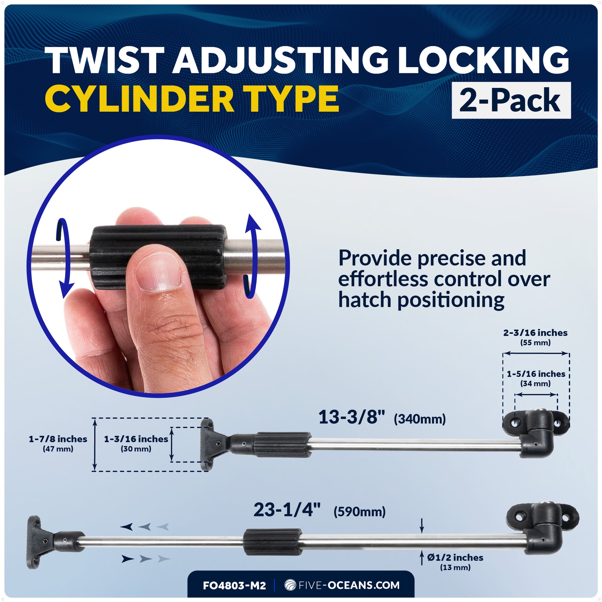 ADJUSTABLE LENGTH: Tube diameter of 1/2 inch (13mm) with an adjustable length range of 13-3/8 inch (340mm) to 23-1/4 inch (590mm), providing flexible and customizable hatch management.