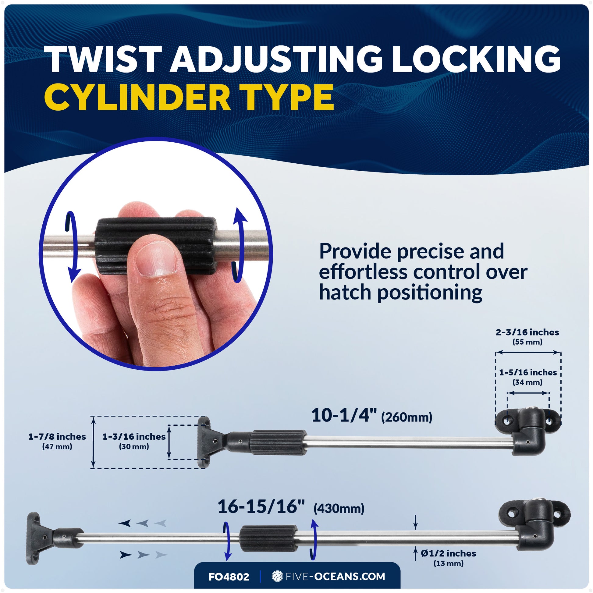 ADJUSTABLE LENGTH: Tube diameter of 1/2 inch (13mm) with an adjustable length range of 10-1/4 inch (260mm) to 16-15/16 inch (430mm), providing flexible and customizable hatch management.