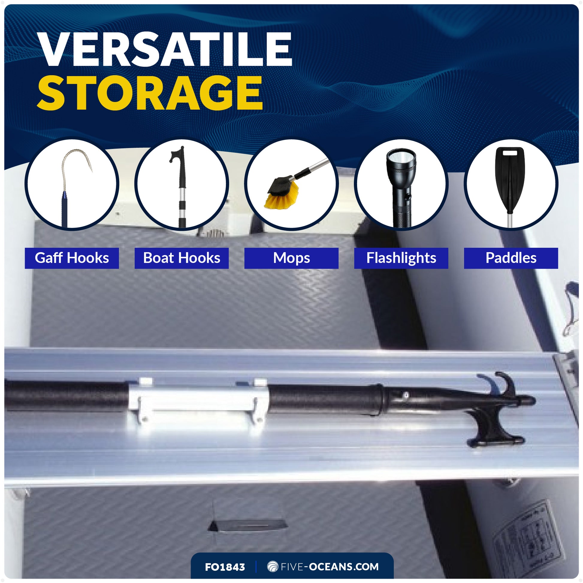 VERSATILE STORAGE SOLUTION: Ideal for organizing a wide range of items such as boat hooks, gaffs, mops, flashlights, oars, pumps, tools, and various accessories, keeping everything neatly in place.