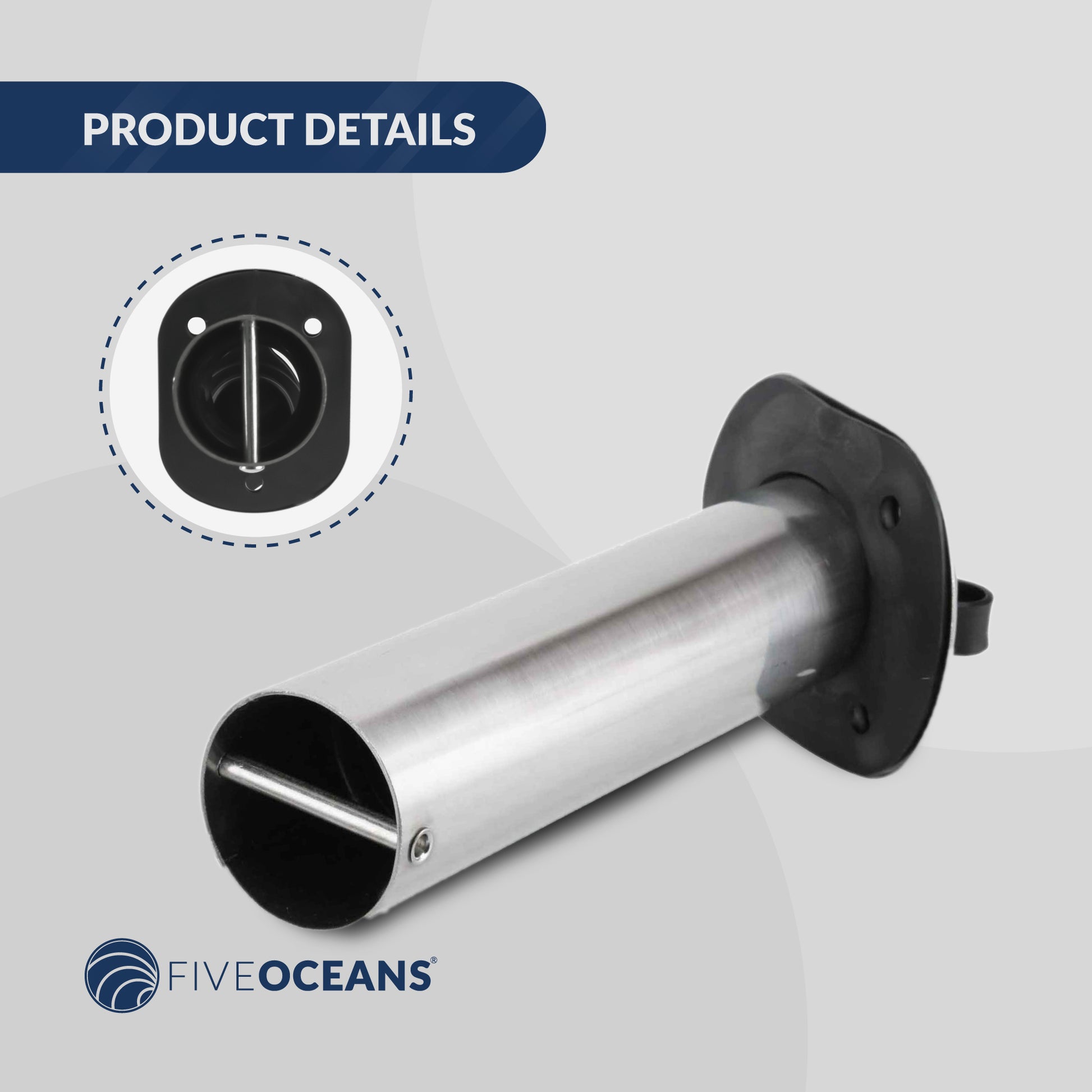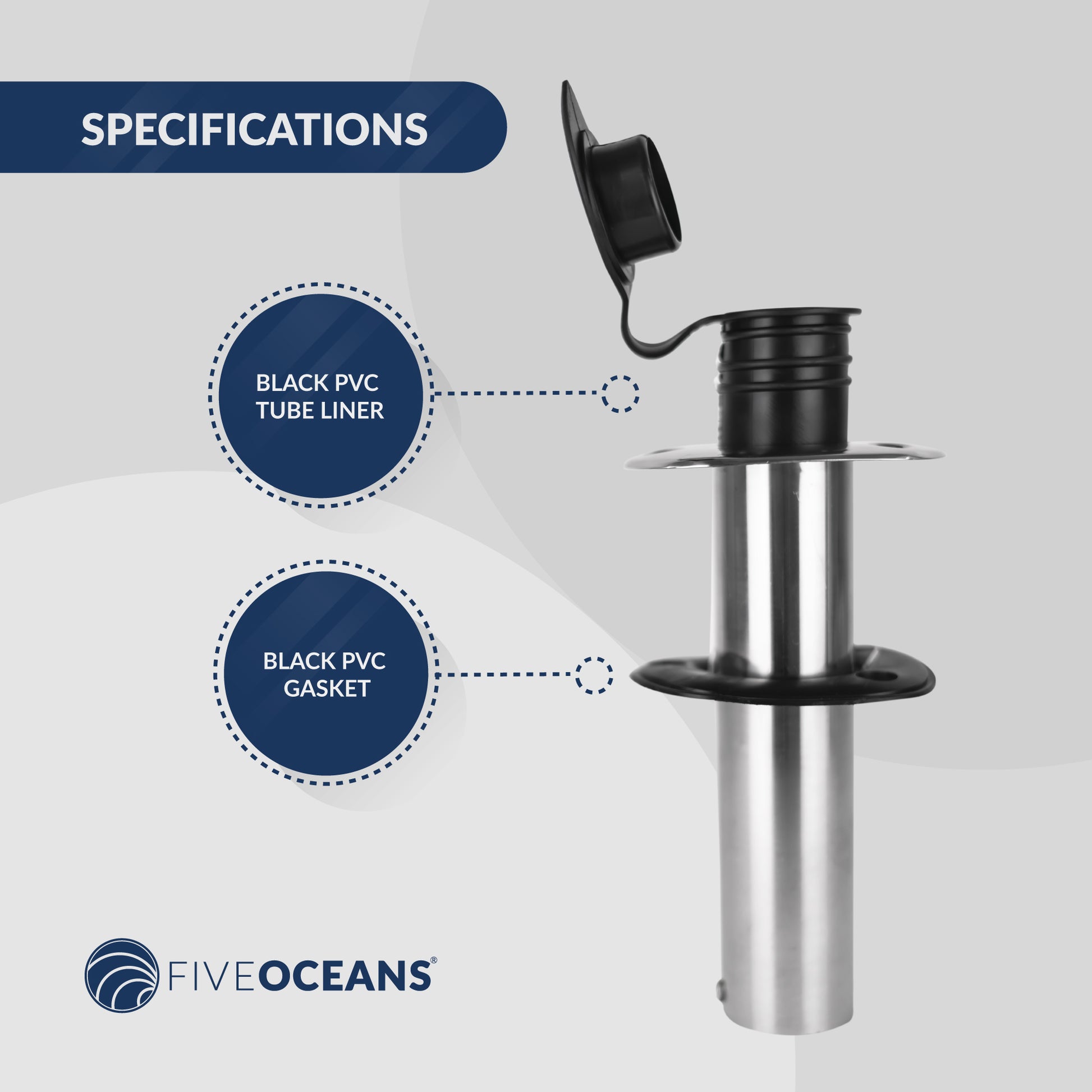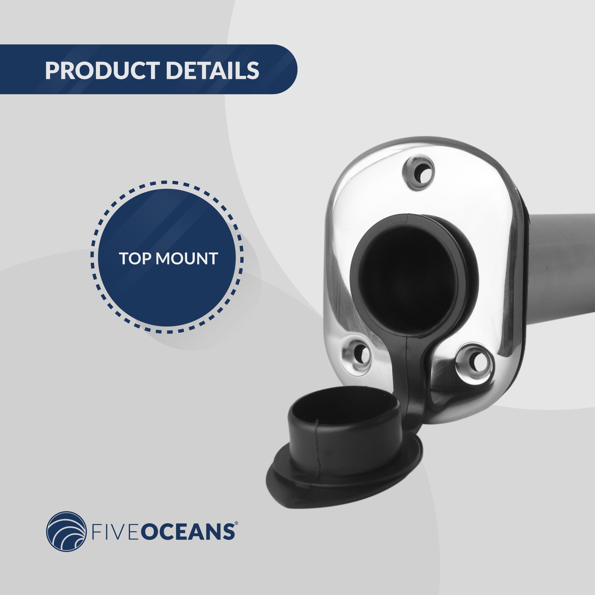 This Five Oceans Flush Mount Rod Holder 90-Degree is made of AISI316 Stainless Steel and PVC UV Resistant Flip-up Cap to Resist the conditions of the Marine Environment. This Rod Holder has a 1 1/2 inches (50.8mm) diameter center opening for the rod handle.