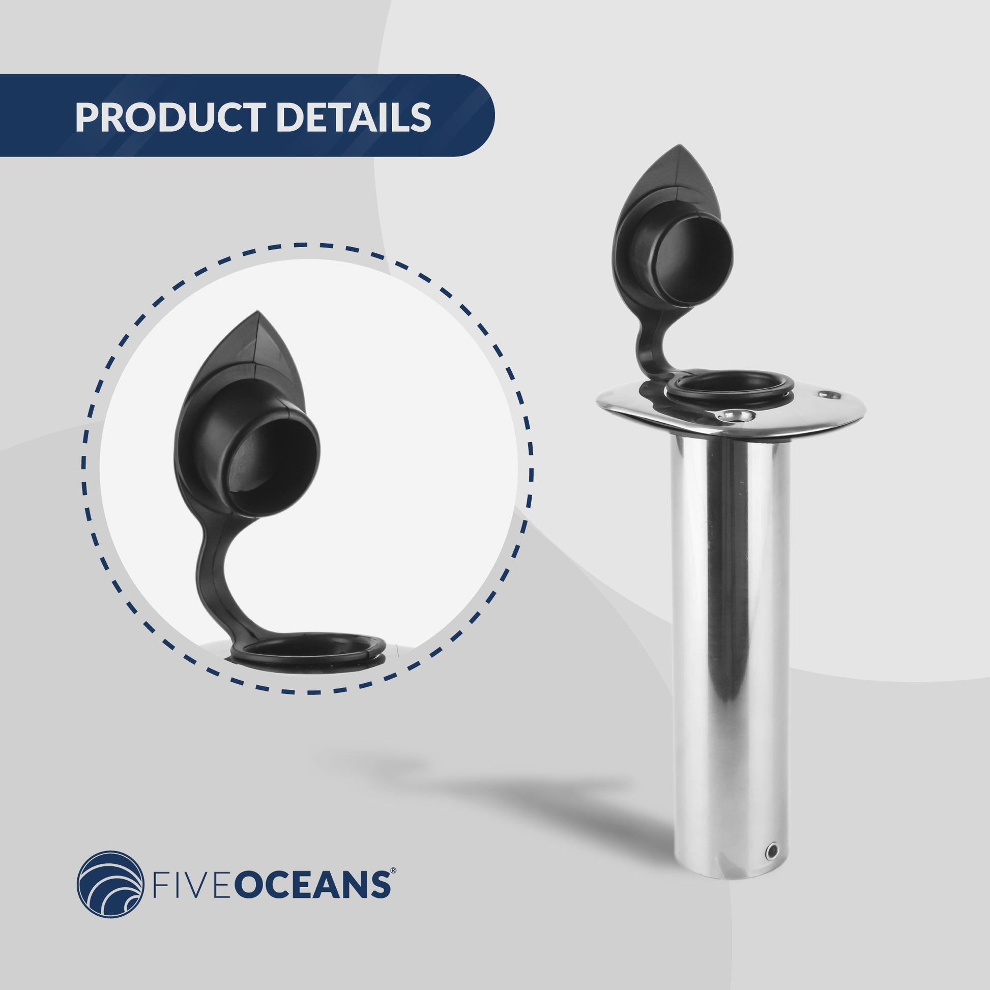 This Five Oceans Flush Mount Rod Holder 90-Degree is made of AISI316 Stainless Steel and PVC UV Resistant Flip-up Cap to Resist the conditions of the Marine Environment. This Rod Holder has a 1 1/2 inches (50.8mm) diameter center opening for the rod handle.