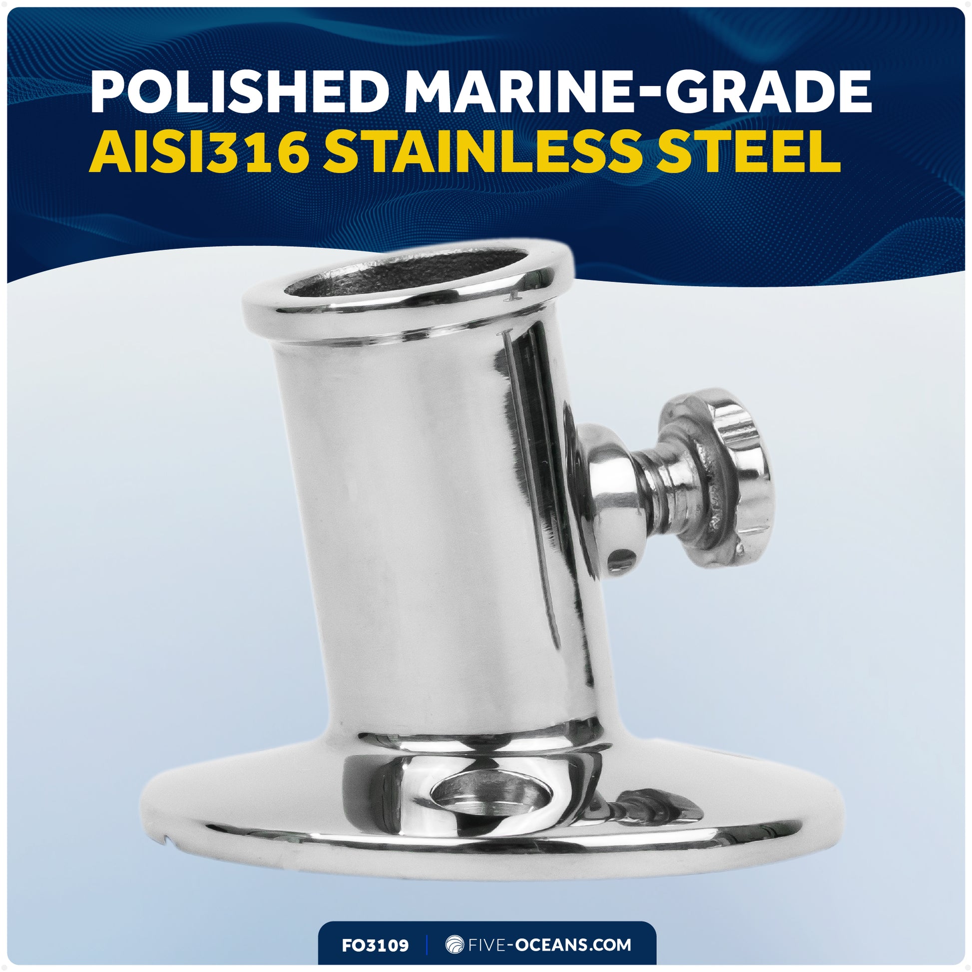 HEAVY-DUTY MARINE-GRADE BUILD - Crafted from solid Type 316 stainless steel, this Five Oceans flag pole holder with knob ensures long-lasting durability and corrosion resistance, perfect for harsh marine saltwater environments.