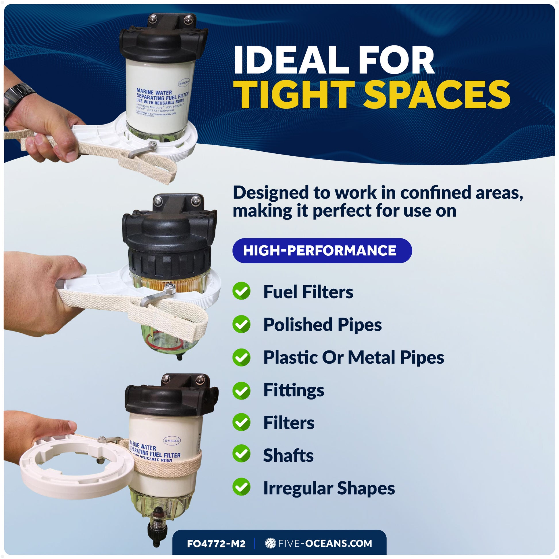 VERSATILE APPLICATIONS: Suitable for boat maintenance. Easy removal of standard filter bowls and see-through fuel filters. The long nylon strap adjusts freely to remove various filter canisters.