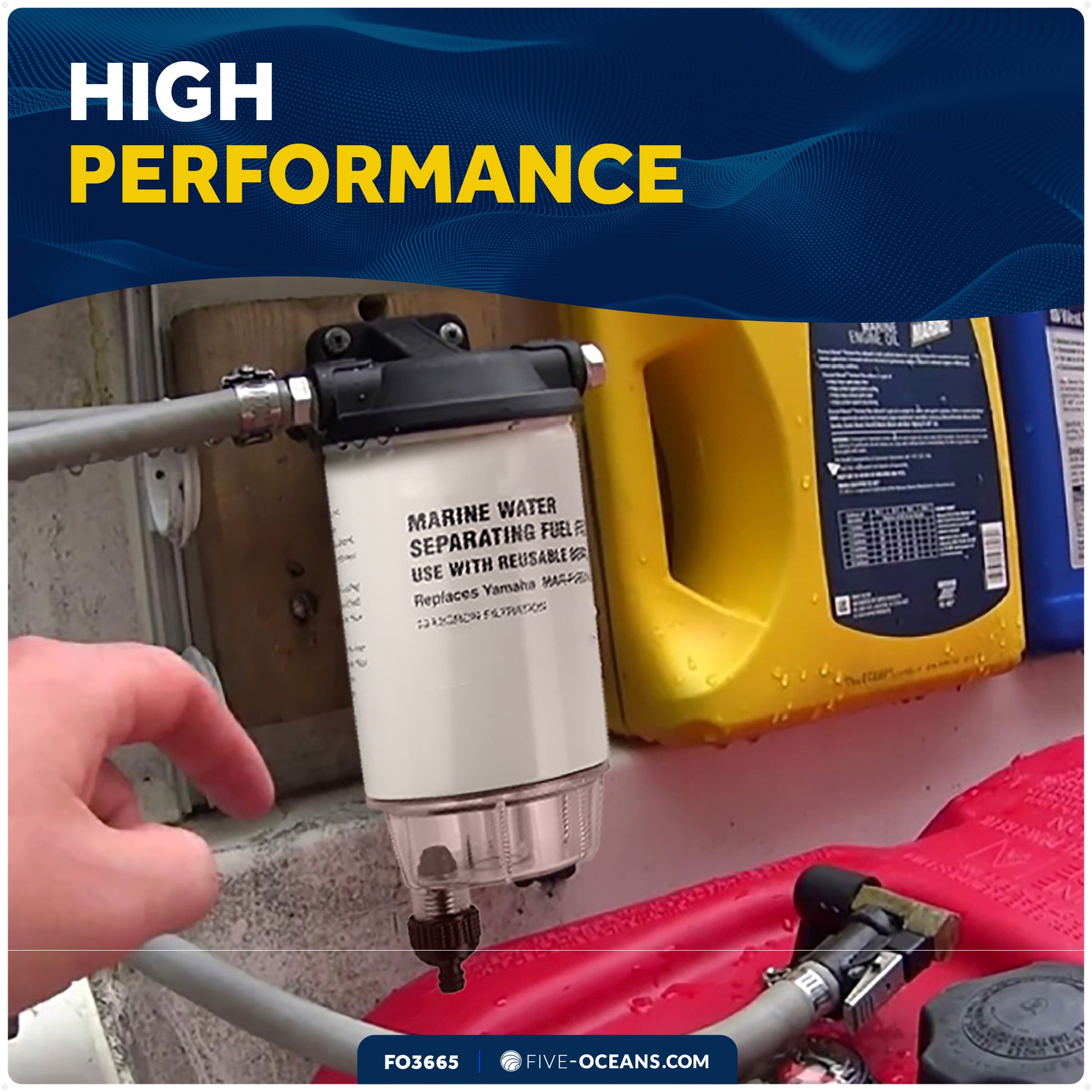 HIGH-QUALITY BOAT FUEL FILTER: Five Oceans fuel filter water separator with bowl offer a 92% efficiency rate while maintaining fuel flow rates to meet the demands of modern high-performance engines. Filtration: 10 microns.