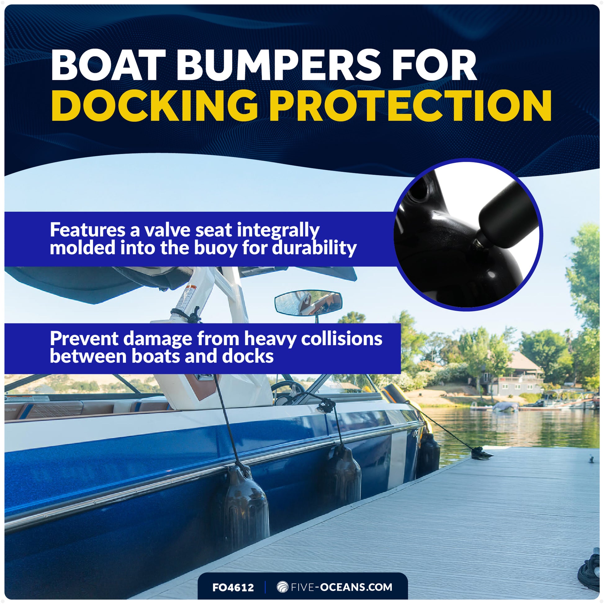 BOAT BUMPERS FOR DOCKING PROTECTION: These pontoon boat bumpers help to protect boats and docks from damage caused by heavy collisions between hard surfaces. A valve seat is integrally molded into the boat buoy, not glued in like others.