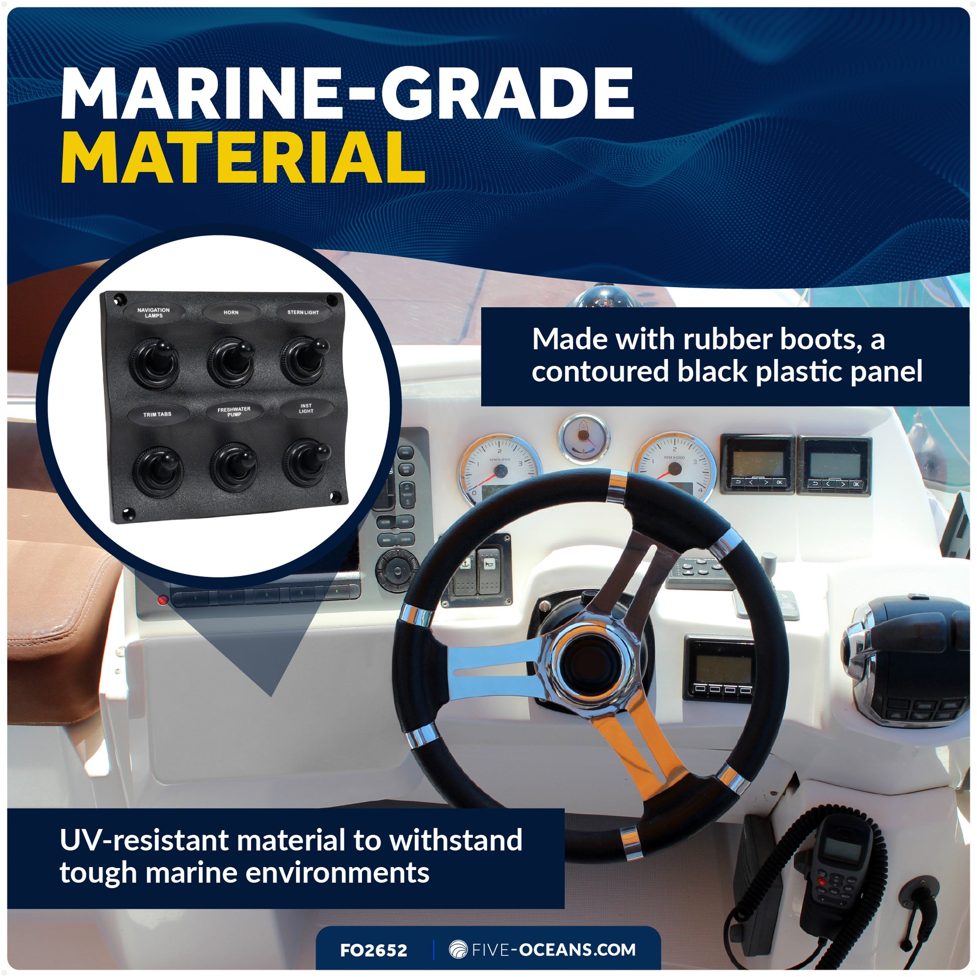 DURABILITY - The marine switch panel is made with rubber boots, a contoured black plastic panel, and UV-resistant material to withstand even the toughest marine environments