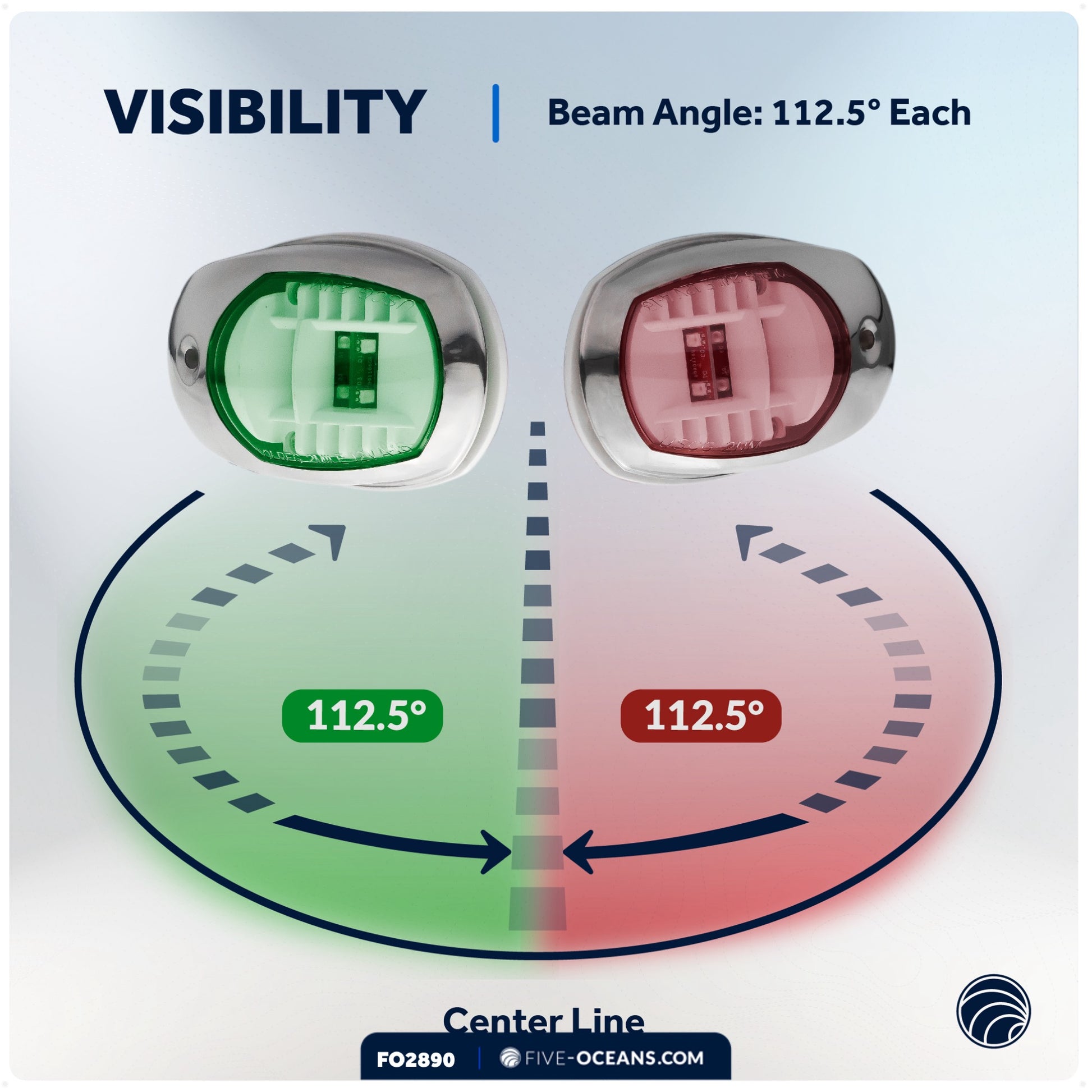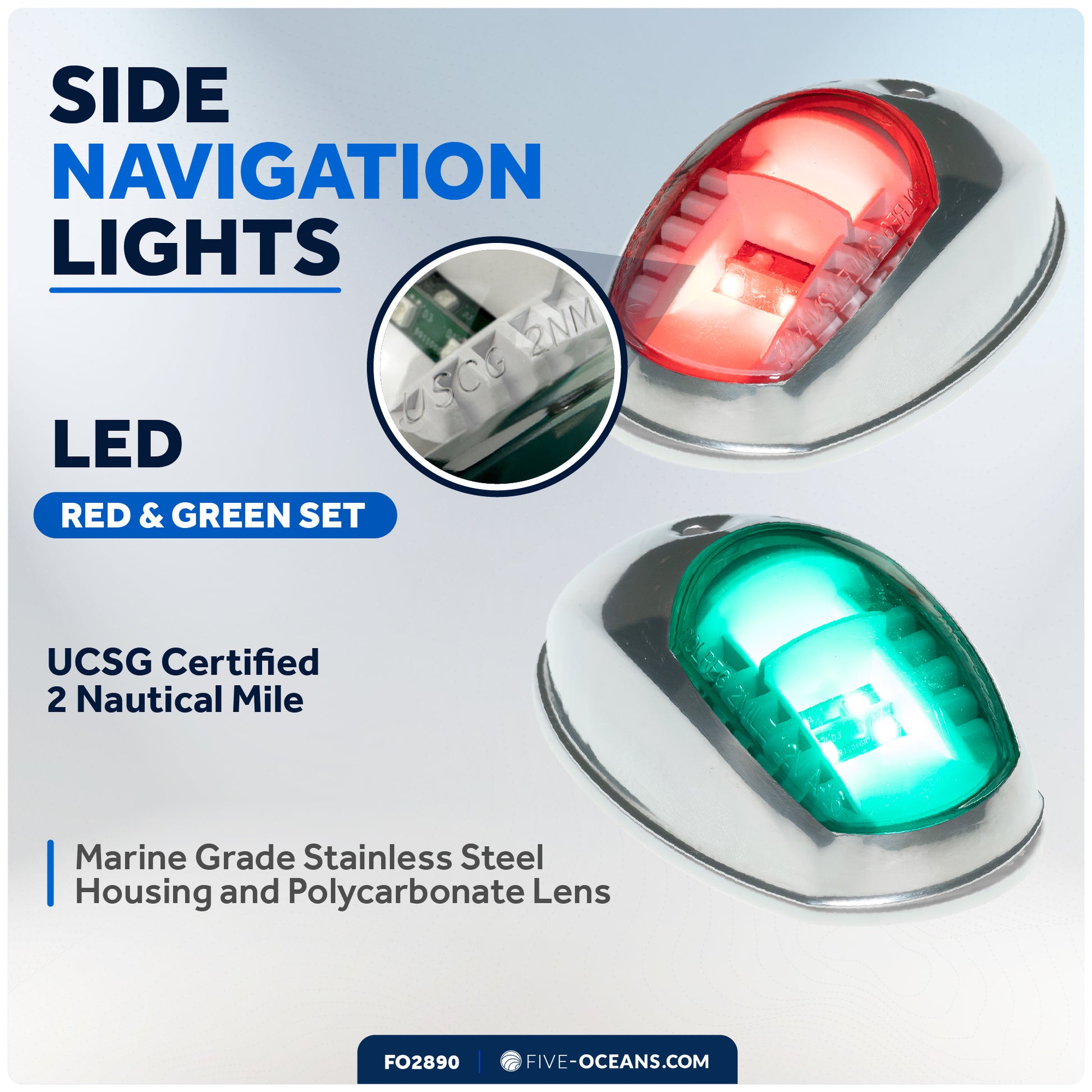 LED Side Navigation Lights, Red & Green Set, Stainless Steel Housing - FO2890