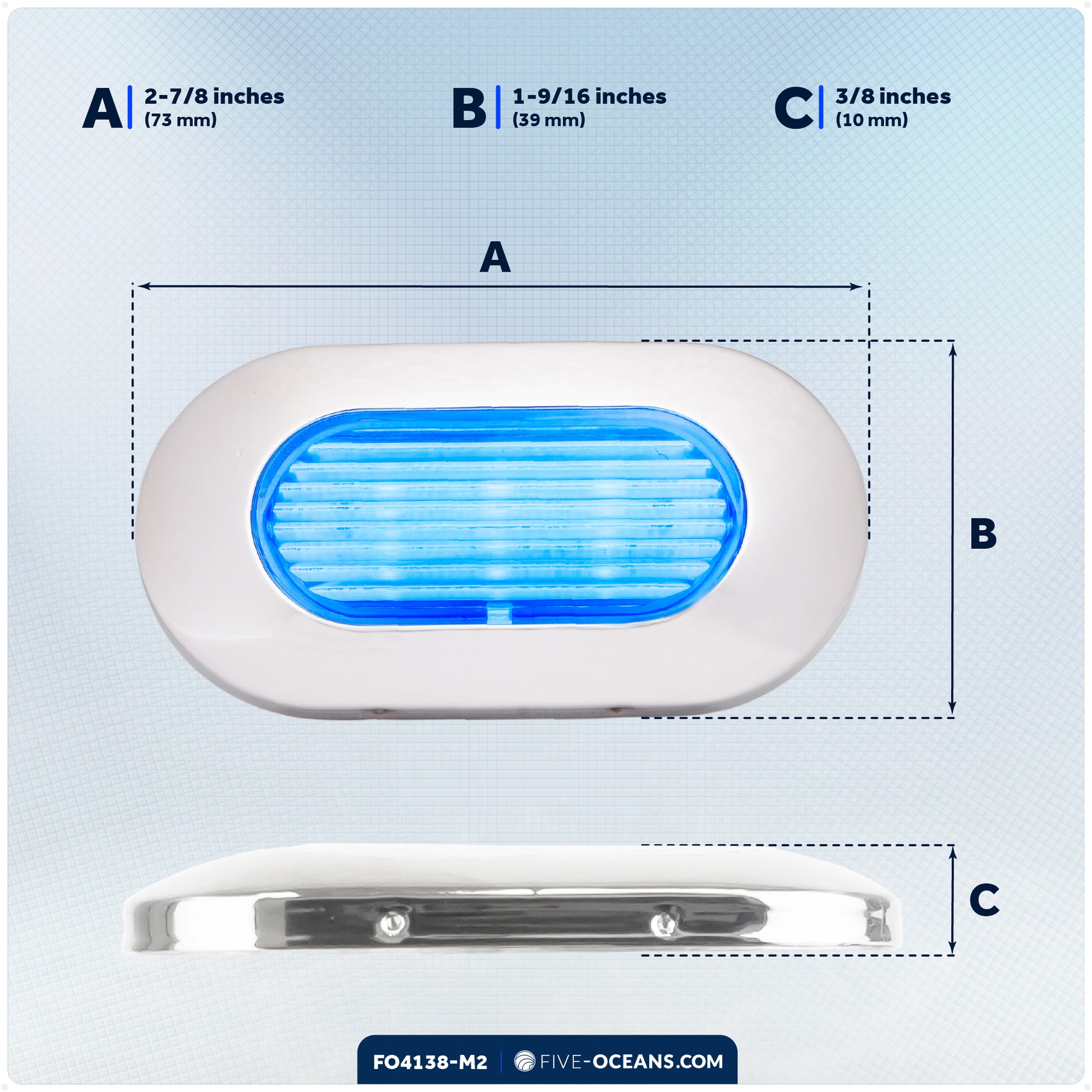 Oval LED Surface-Mount Courtesy / Accent Light, Blue, 12V, 2-Pack - FO4138-M2