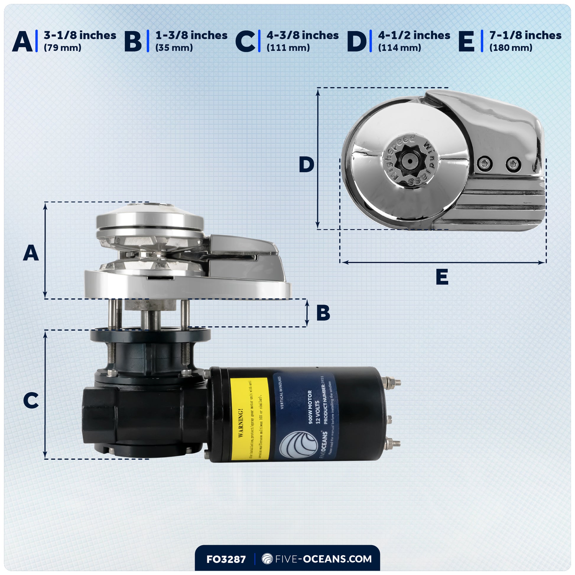 HIGH-PERFORMANCE ANCHOR MOTOR: The High-Power 900 Watts provides a maximum pulling power of 1455 Lb / 660 Kg and a maximum working load of 485 Lb / 220 Kg. It allows a drop speed of 65 feet per minute. Waterproof IP66 rating motor. The five Oceans Windlass model number indicates Windlass's electric motor power (Watts), not the pulling power. Electric motor power (Watts) is the most important value when choosing a windlass for your boat.