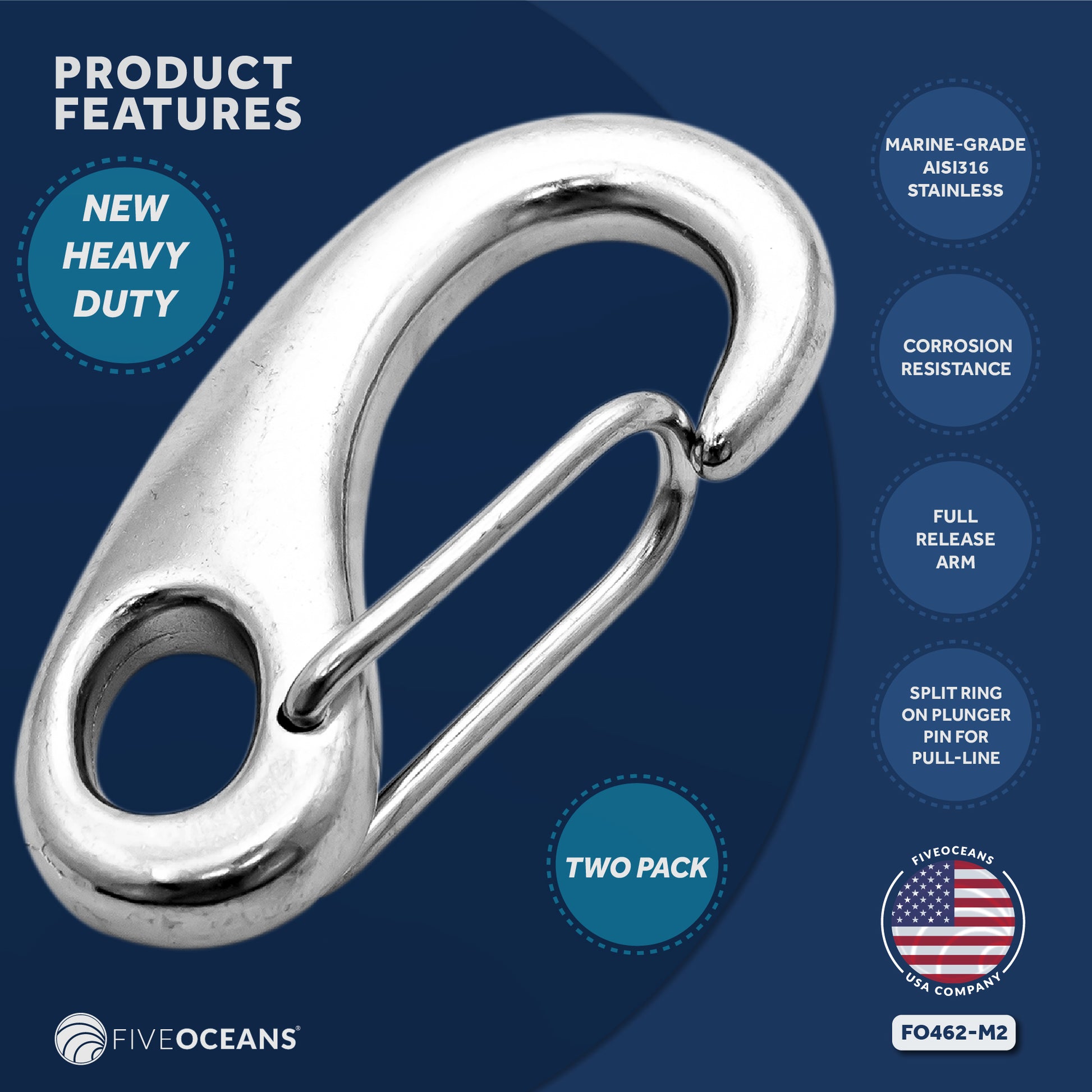 Made of AISI316 Stainless Steel Highly polished corrosion resistant is great to resist the saltwater environment.