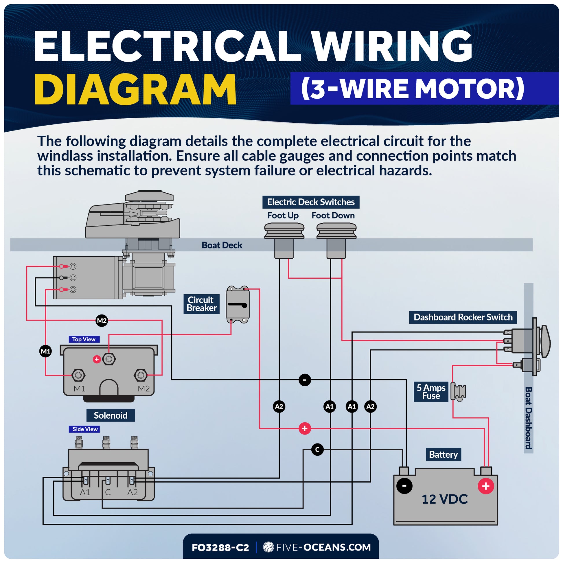 Vertical Windlass Kit 1000W, 12V with Anchor Rode & Swivel - FO3288-C2