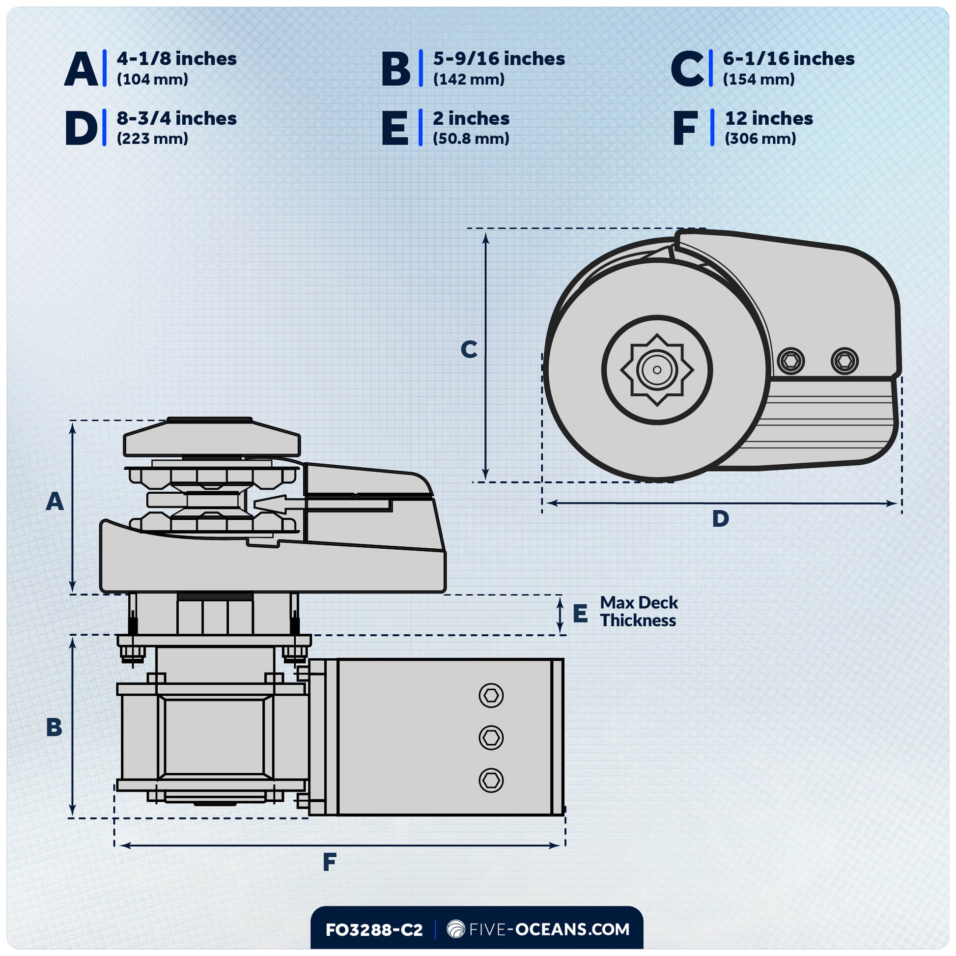 Max deck thickness: 2" (50mm)